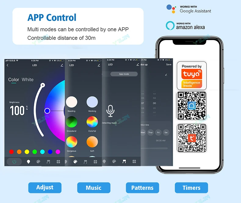 • Smart App Control: Connect to Tuya Smart or Smart Life app for full control over colors, brightness, scenes, and timers