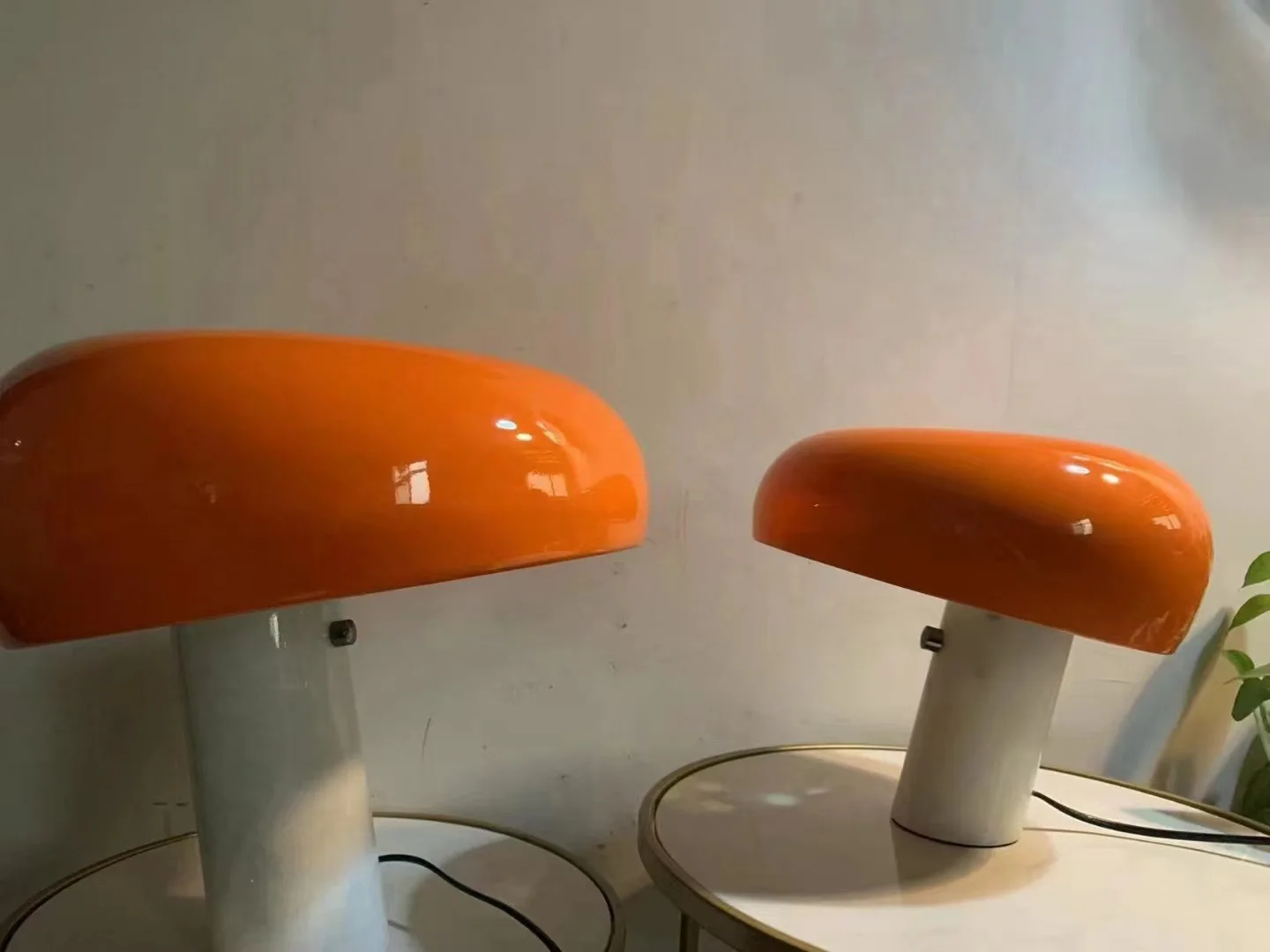 • Mushroom-shaped metal lampshade for a soft, diffused glow