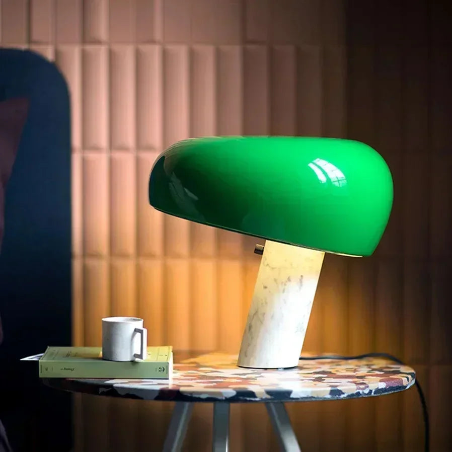 Italian Snoopy Art Table Lamp – Minimalist Marble Mushroom Light for Living Room, Study & Bedroom