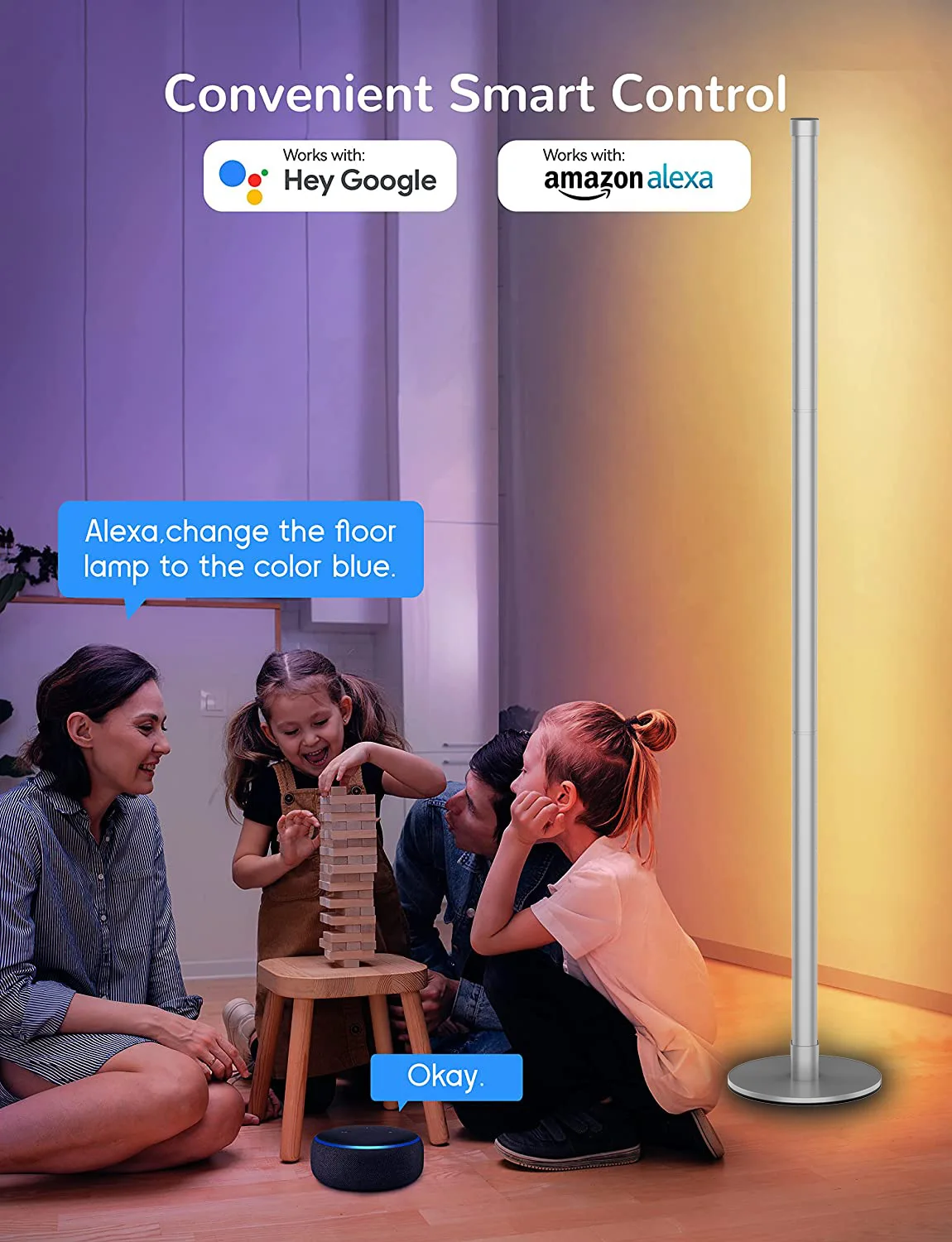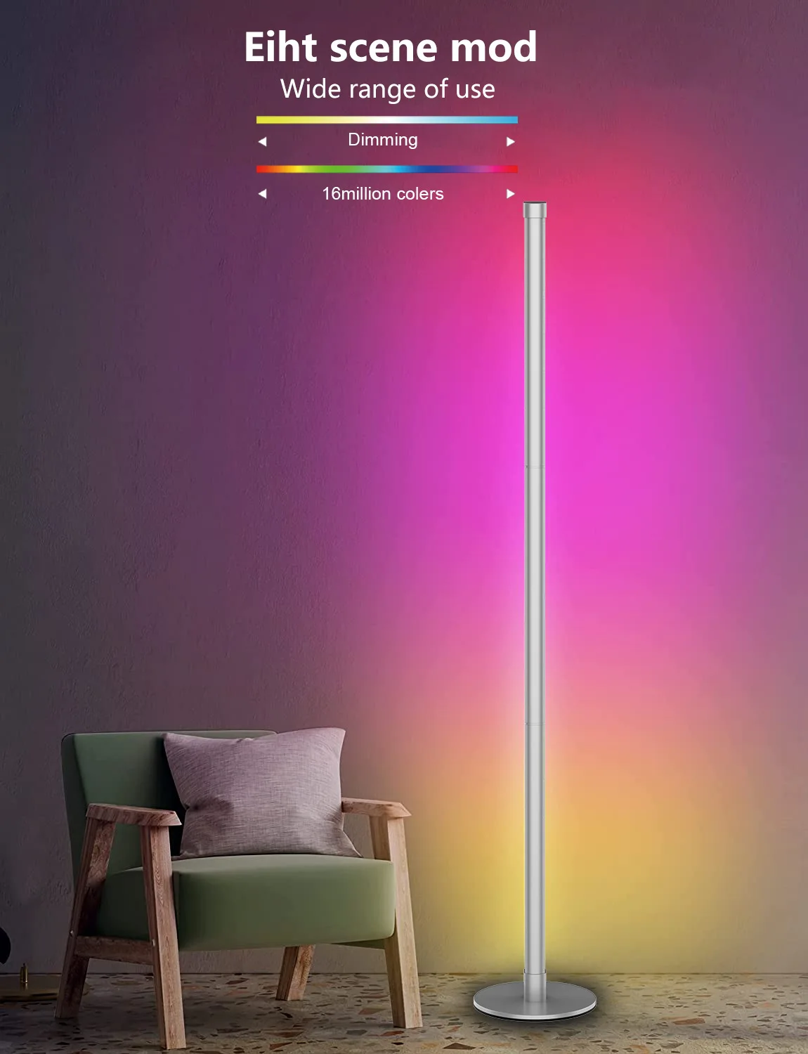 LED Smart Corner Floor Lamp – Tuya WiFi & Bluetooth RGB Ambient Light with Alexa & Google Assistant