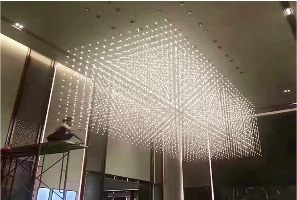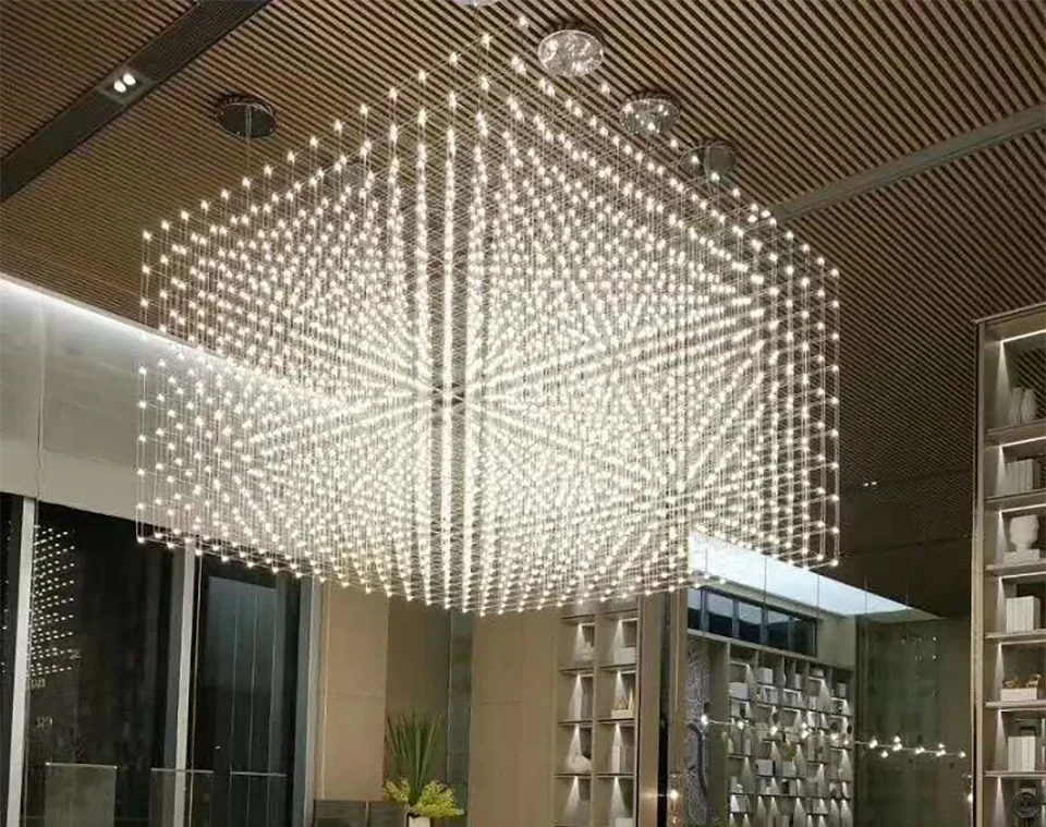 Add a bold and refined focal point to your interior with this modern luxury LED chandelier — featuring a cube-inspired geometric design that blends ambient lighting with architectural elegance for upscale spaces.