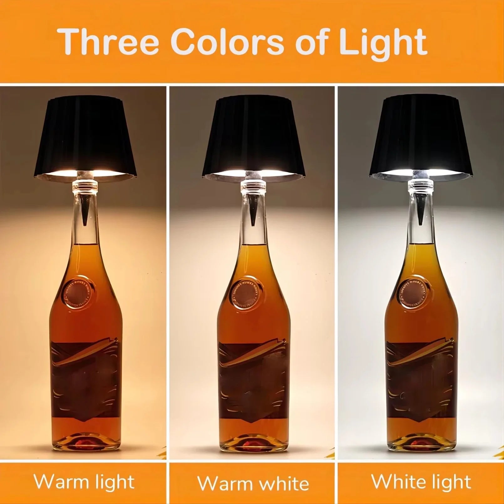 Transform any wine bottle into a stylish lamp with this USB rechargeable bottle table lamp. Featuring touch control, 3 color modes, and stepless dimming — perfect for bars, restaurants, or cozy home décor.