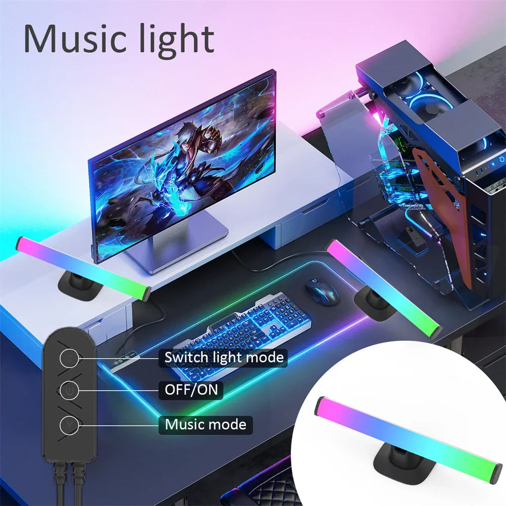 Elevate your gaming and entertainment space with this USB-powered RGB Pickup Light Bar — featuring real-time music sync, vibrant ambient effects, and smart APP control for dynamic desktop or TV backlighting.