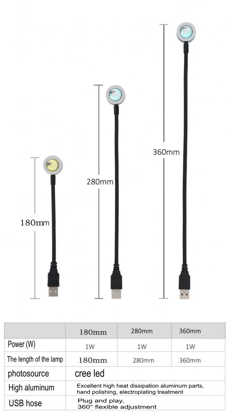 USB Rainbow Sunset Projector Light – Ambient Lamp for Home Decor, Photography & Cafés