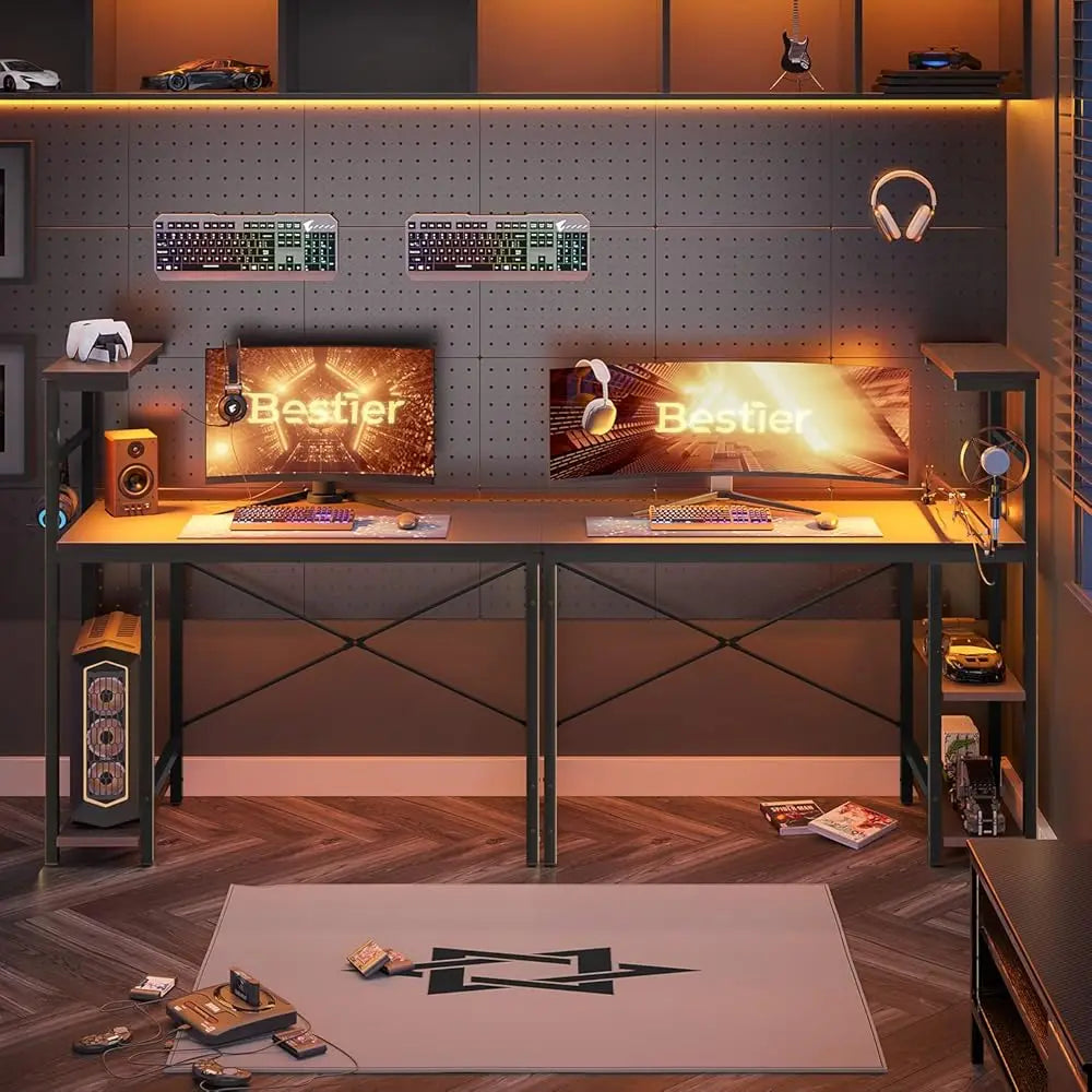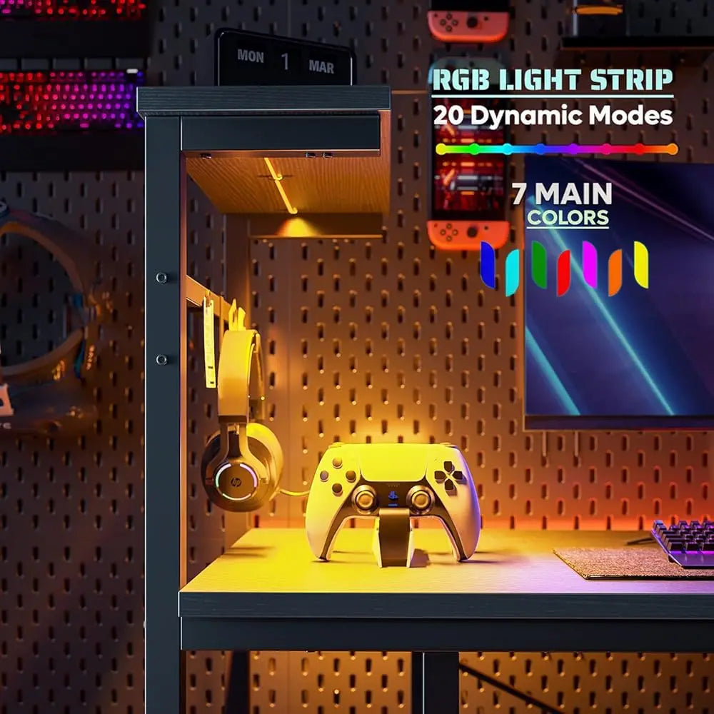 Built for style and efficiency, this 44" Gaming Desk features vibrant LED lighting, smart reversible shelves, and a side storage organizer — making it the perfect all-in-one setup for small gaming rooms, bedrooms, or apartments.