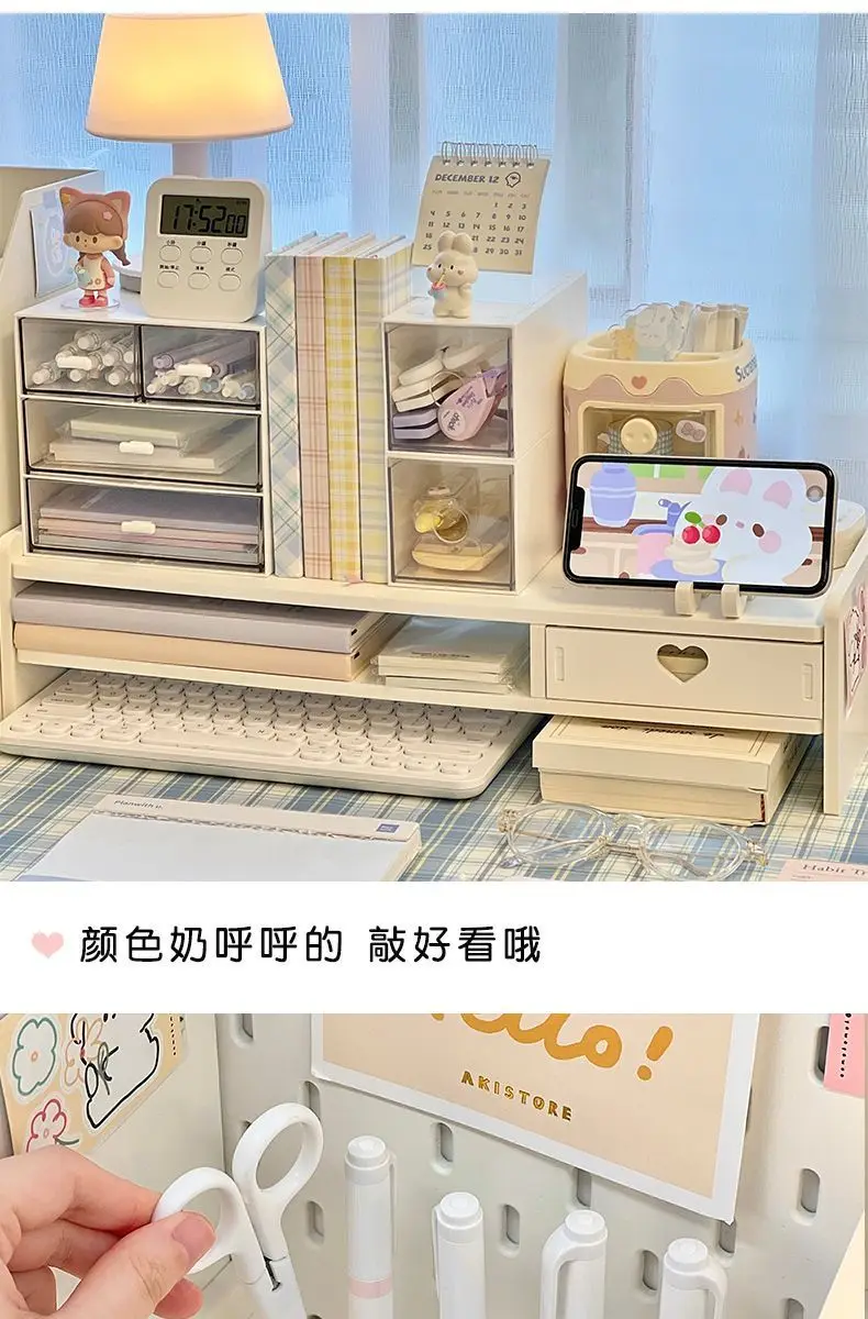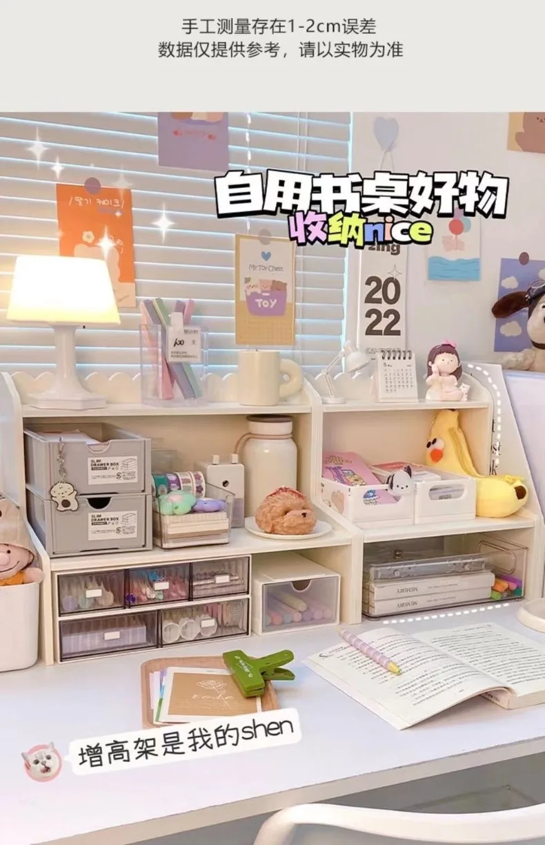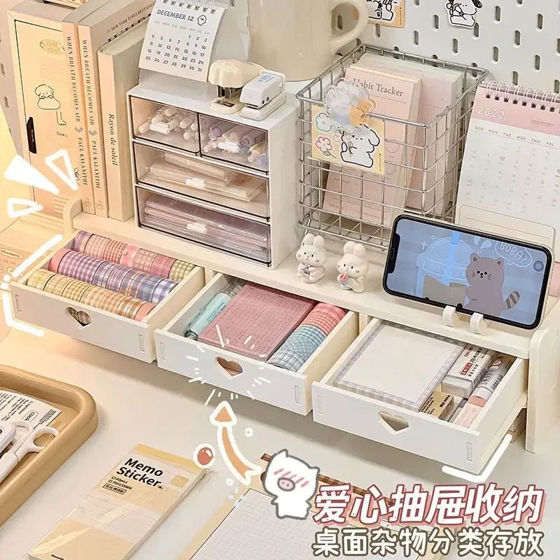 INS Desktop Elevation Stand with Drawers – Multifunctional Storage & Display Rack for Student and Home Office Desks