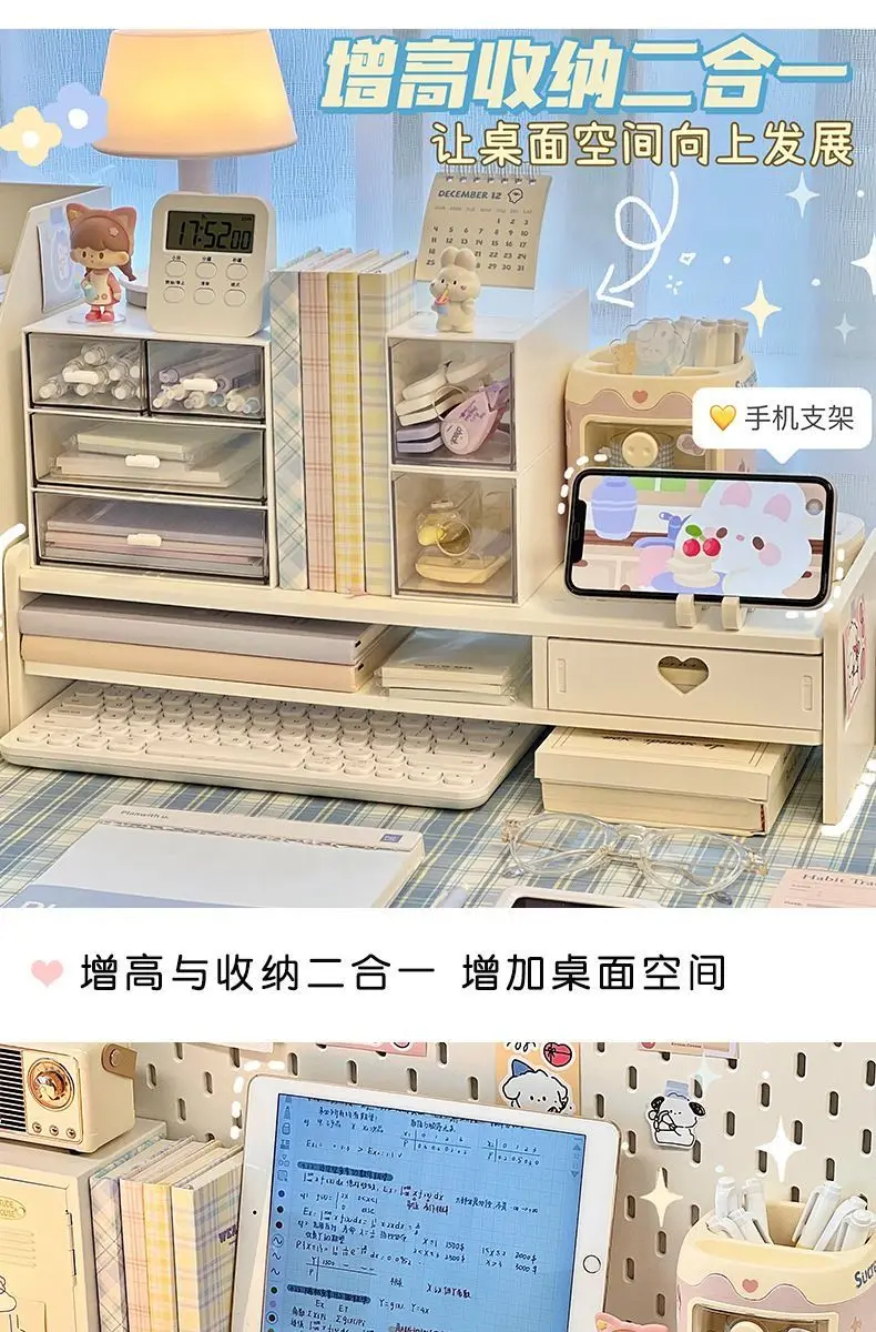 Upgrade your desk with this stylish INS-style elevation stand — featuring built-in drawers and compartments, it offers a clean, modern solution for boosting screen height and organizing your essentials.