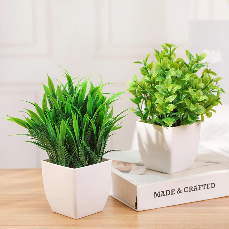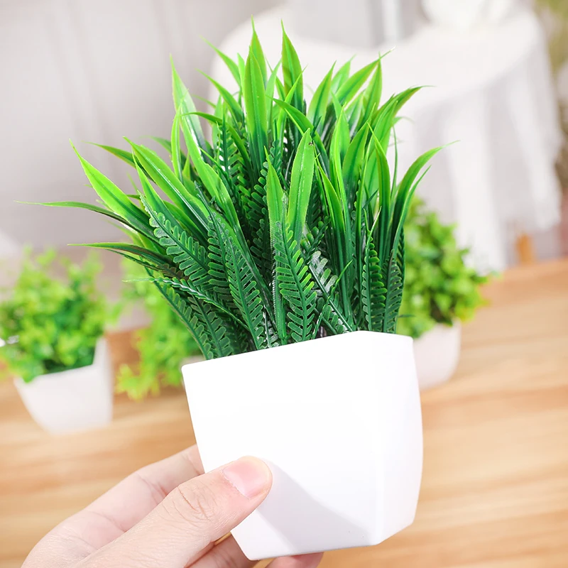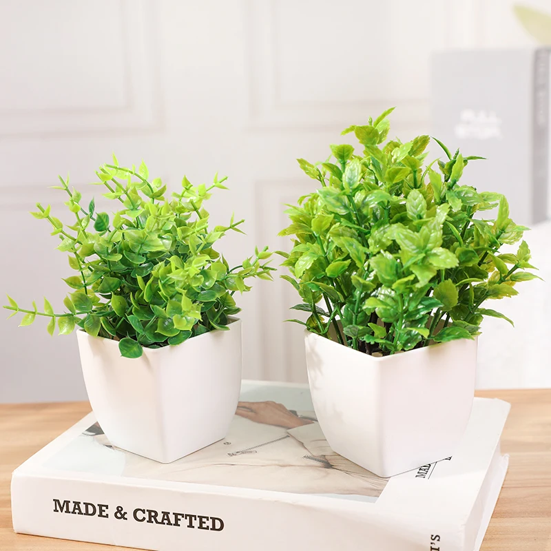 Mini Green Artificial Eucalyptus Bonsai – Faux Potted Plant for Home & Office Décor