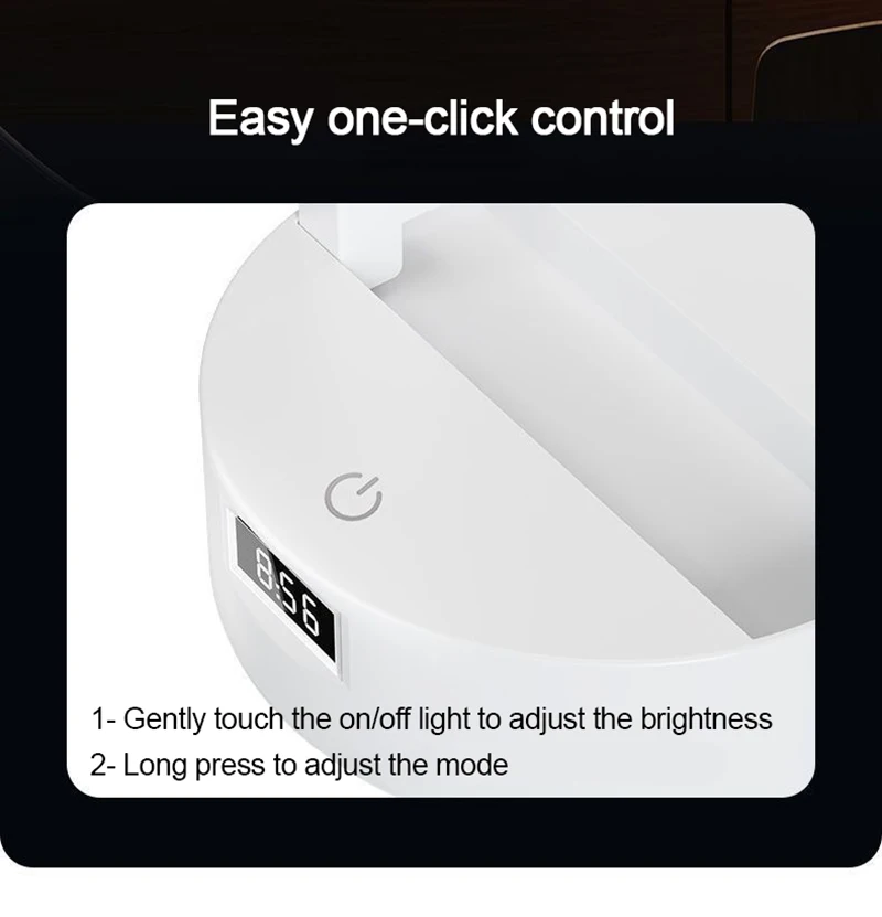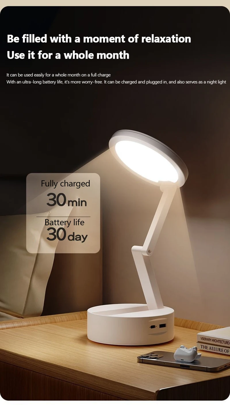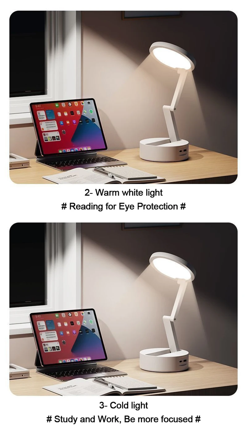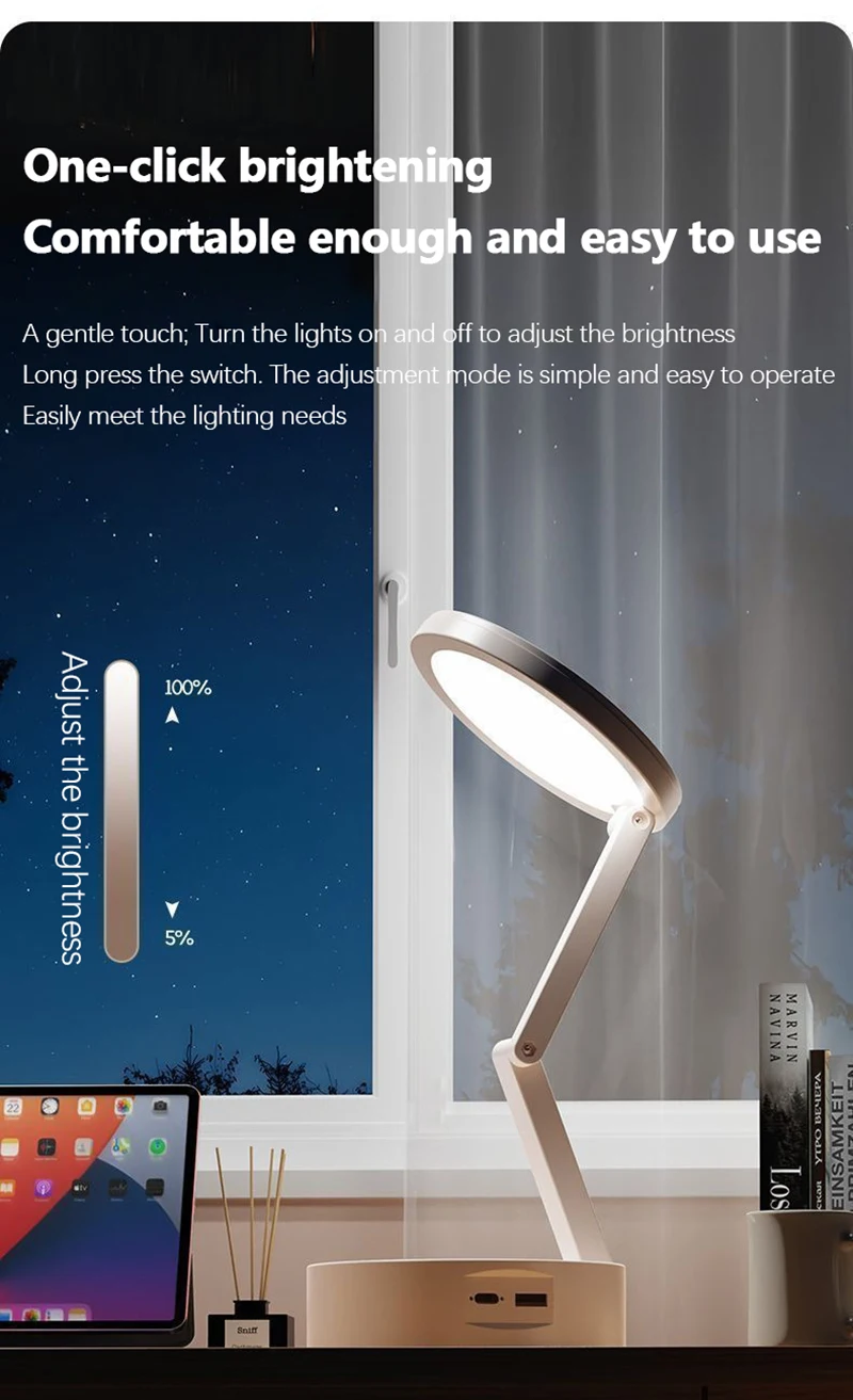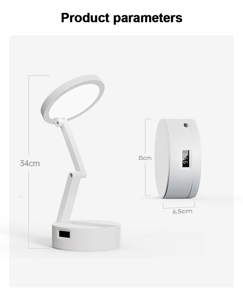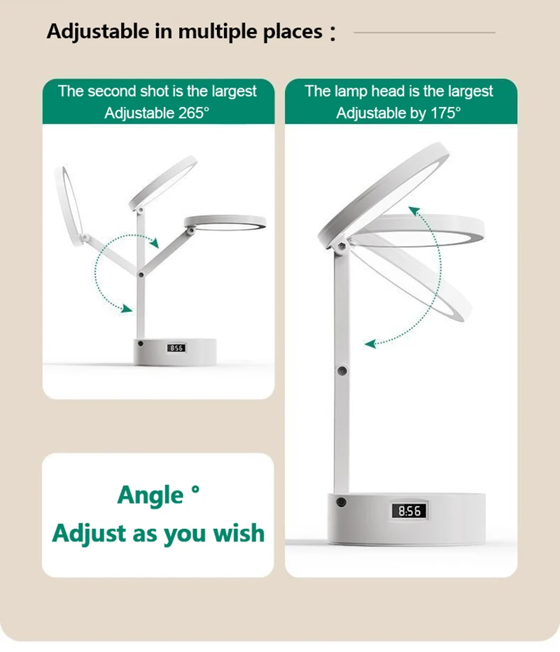 Stay organized and well-lit with this Portable Foldable LED Desk Lamp featuring a built-in clock — perfect for bedside reading, work desks, or study areas with USB rechargeable convenience.
