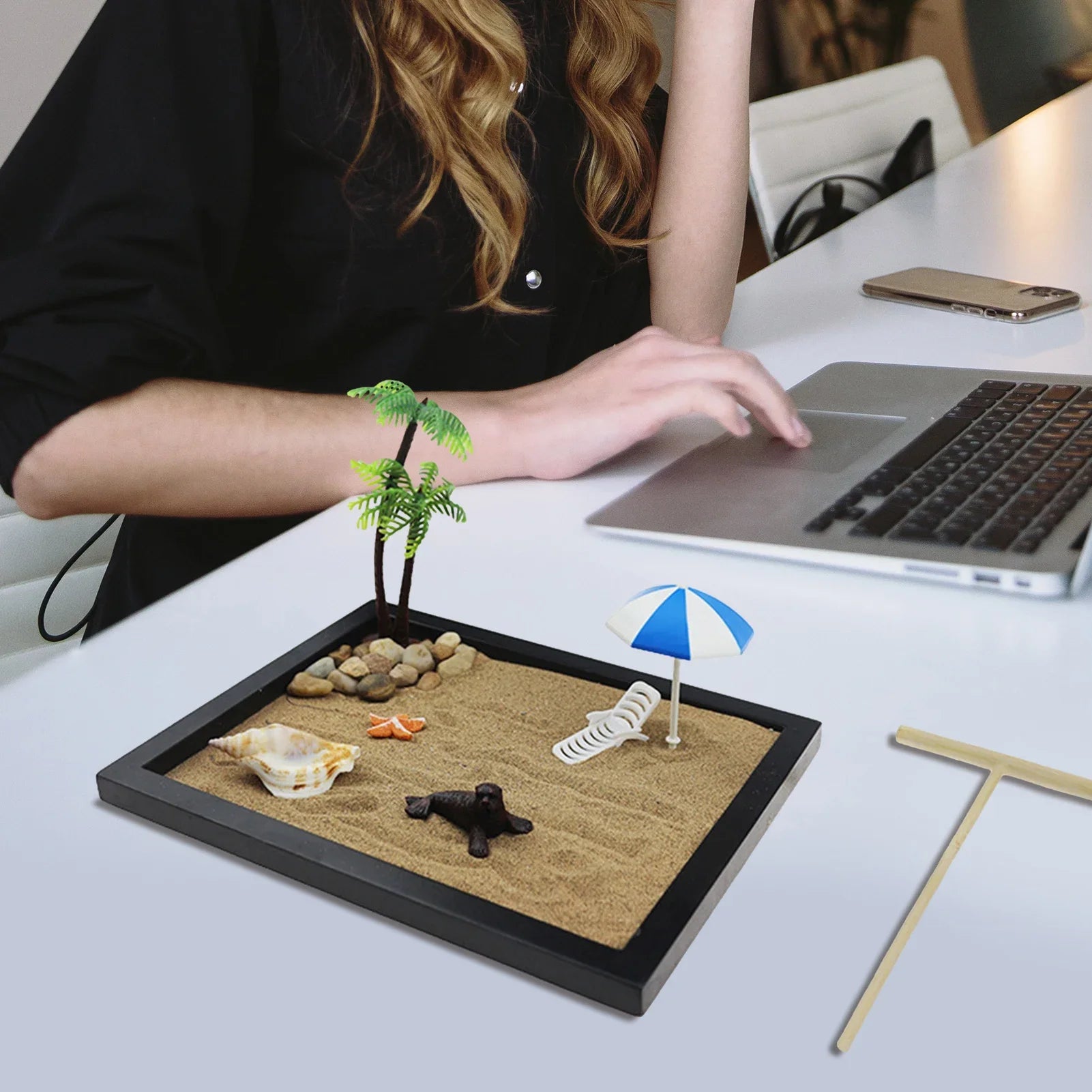 Japanese Zen Sand Garden – Mini Desktop Ornament Kit for Office or Home Décor
