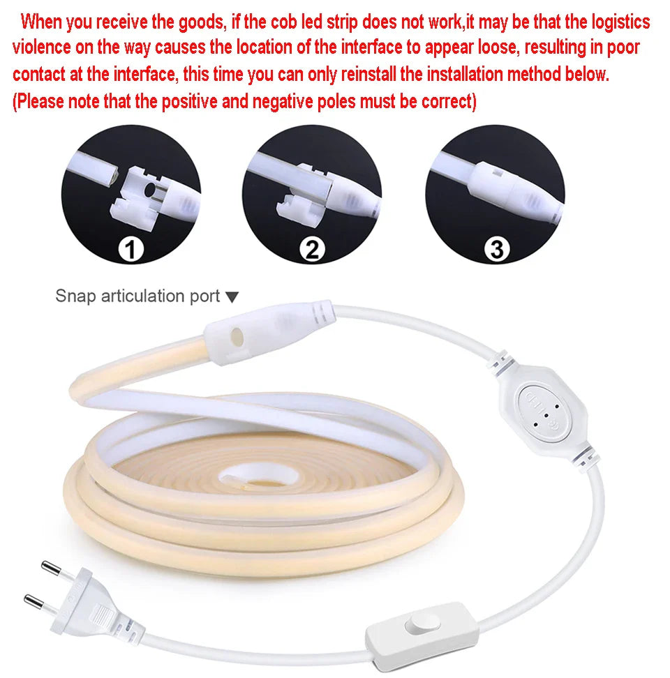 110V/220V COB LED Strip Light – Super Bright Waterproof Lighting with EU/US Power Supply
