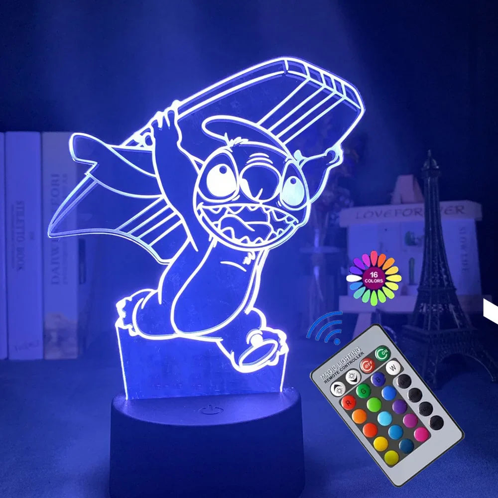 Light up your room with adorable charm! This 3D illusion night light featuring Stitch from Lilo & Stitch creates a magical visual effect — perfect as a decorative lamp or thoughtful gift for fans of all ages.