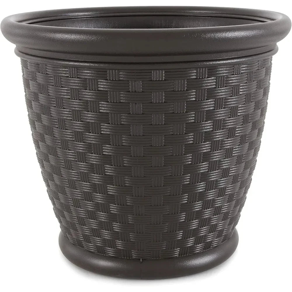 18-Inch Plastic Wicker Garden Planters – Decorative Planting Pots (4 Pack)