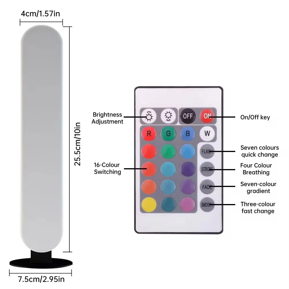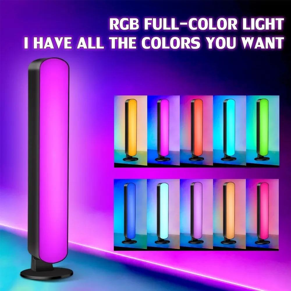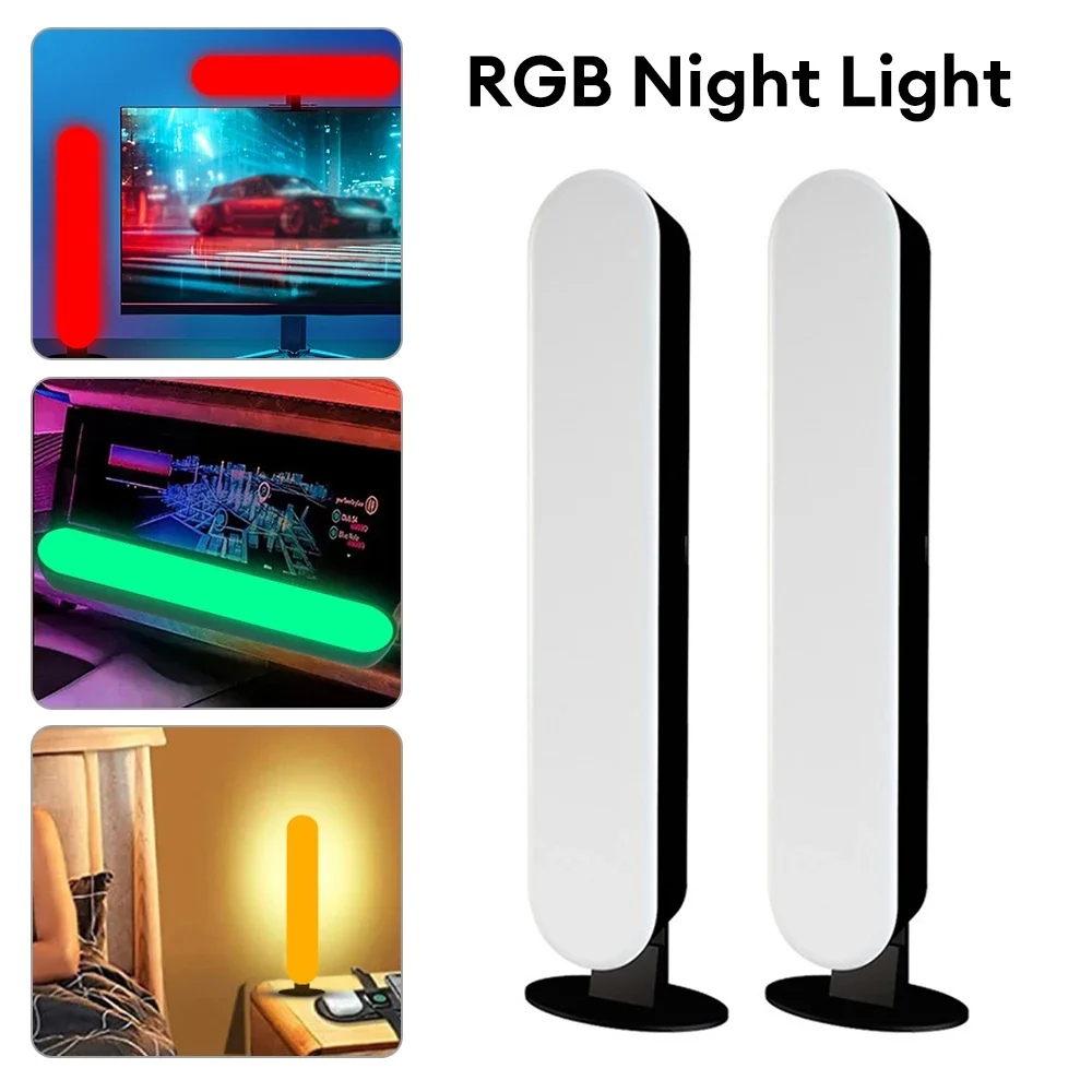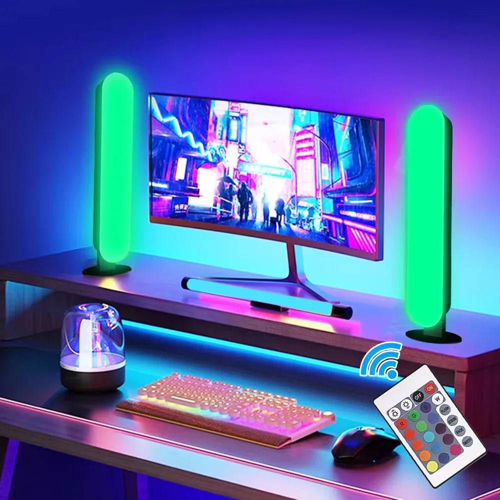 Durable ABS housing with high-quality RGB LEDs and built-in sound sensor, designed for vertical or horizontal placement on desks or behind TVs.
