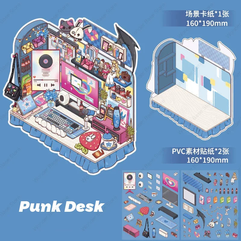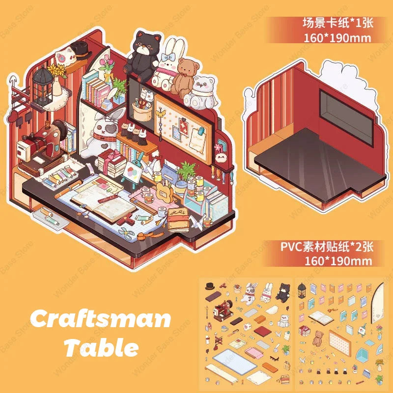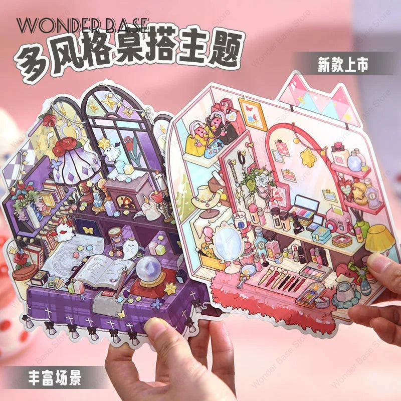 3D DIY Plus Size Corner Desk Miniature Scene Stickers – Stacked Landscape Cabin Stickers for Kids, Students & Creative Gifting