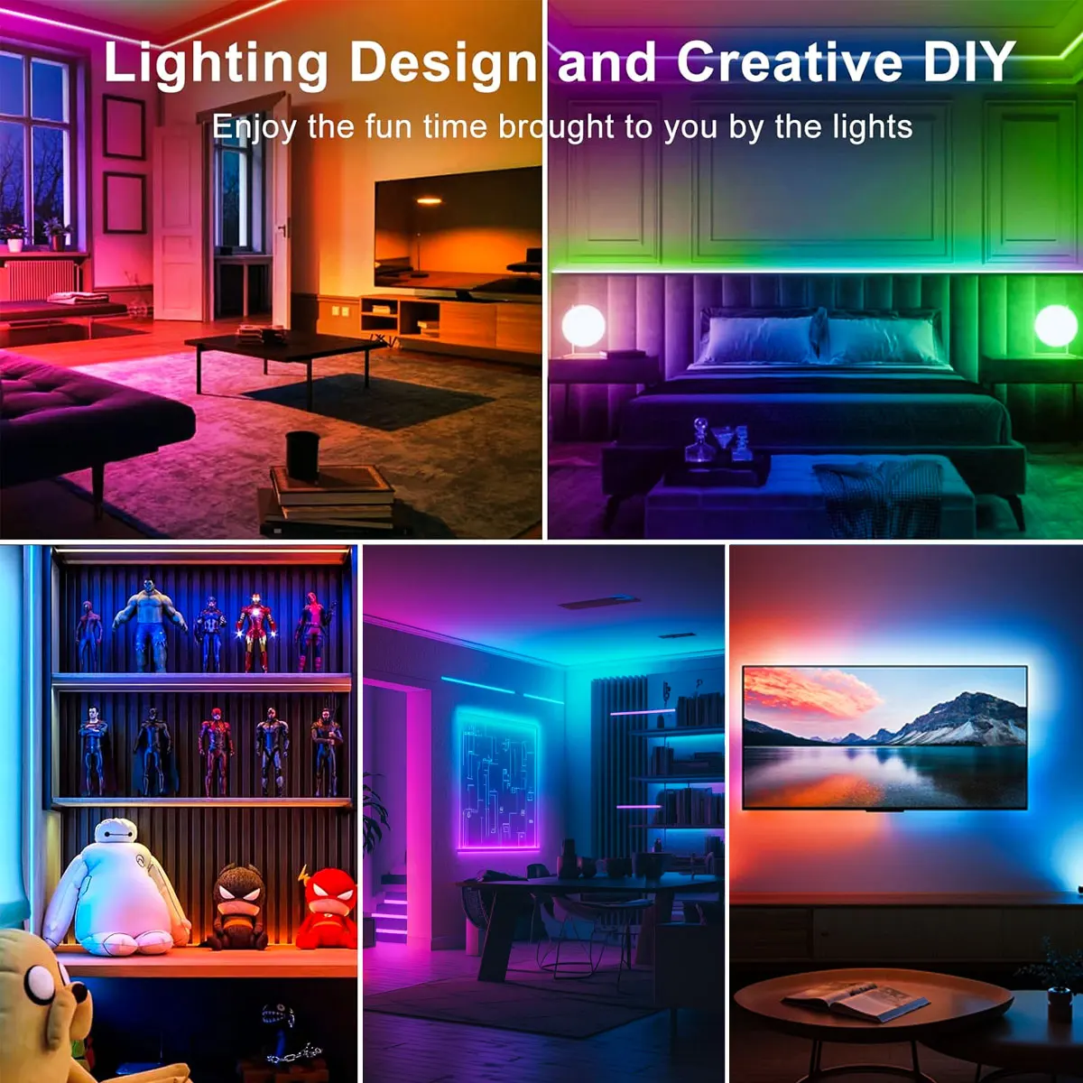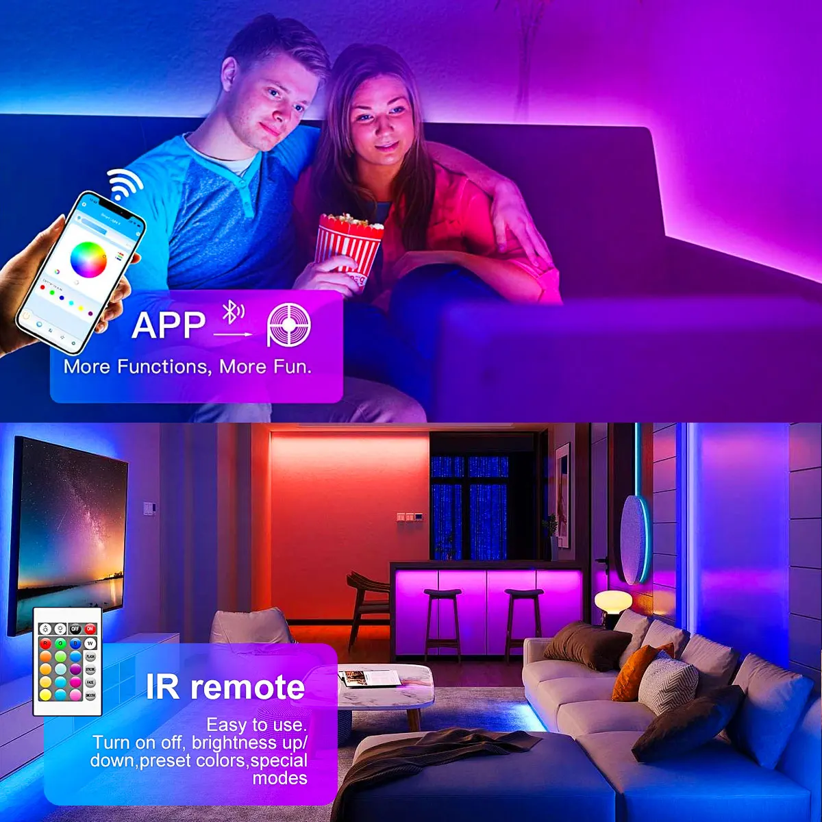5M/10M/15M/20M RGBIC LED Strip Lights – USB 5V with APP Control & Music Sync for TV, PC & Gaming Backlight