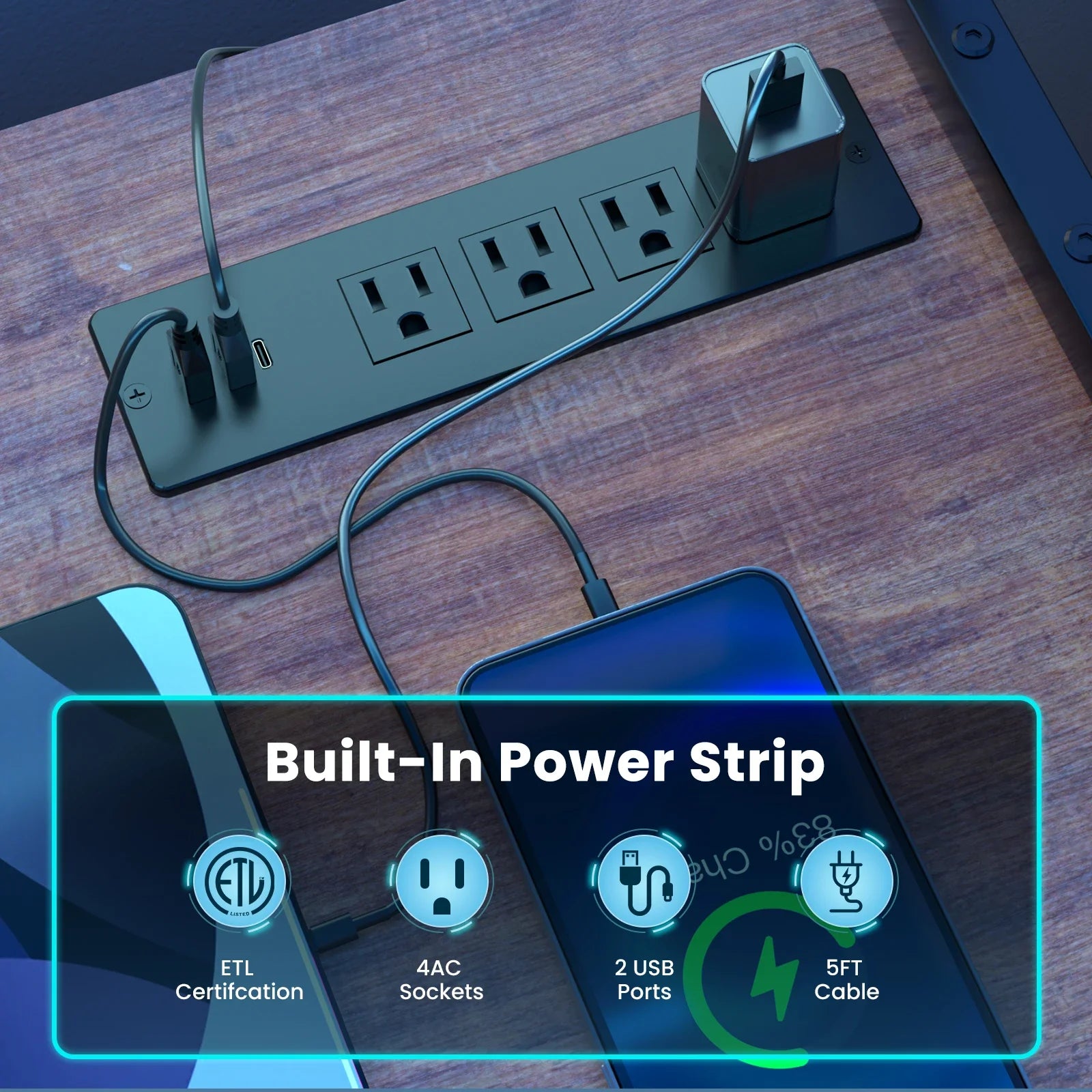 Built-in power outlet & USB ports – easily charge and power your devices without clutter
