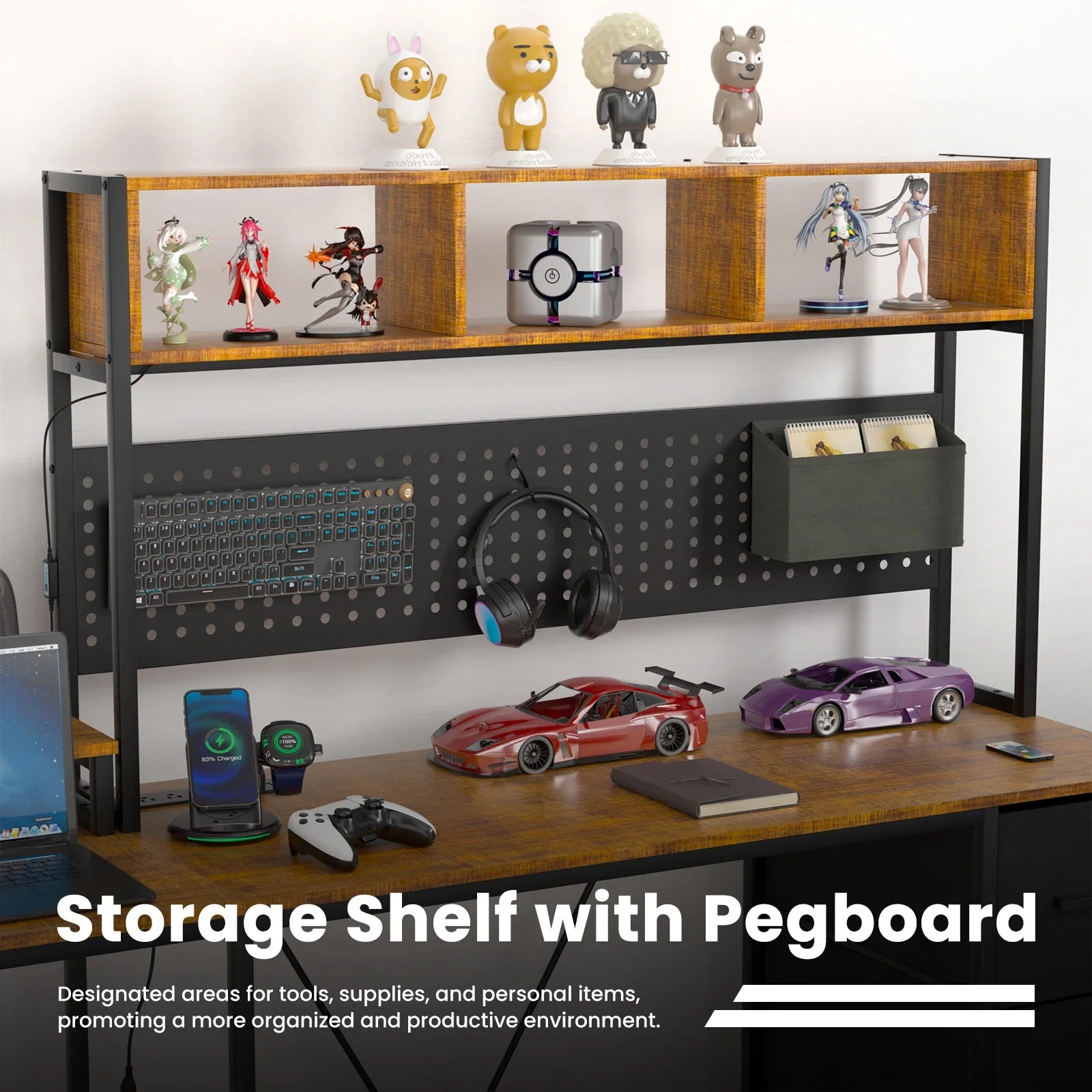 67" L-Shaped Gaming Desk – Brown Computer Desk with Built-In Power Outlet