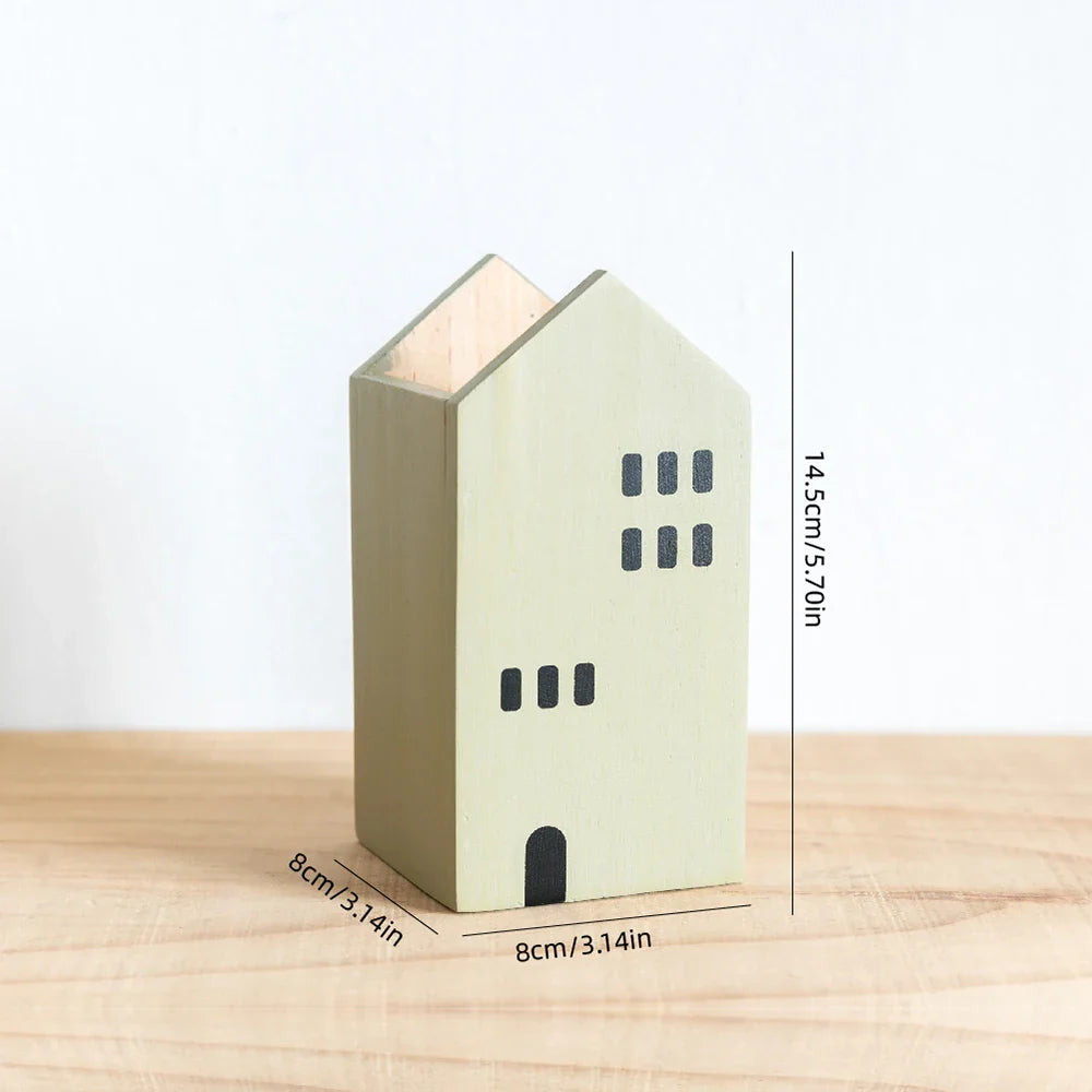 Bring fun and order to your desk with this Cartoon House Wooden Pen Holder — perfect for study, work, or makeup storage!