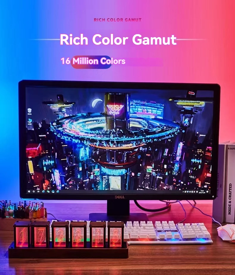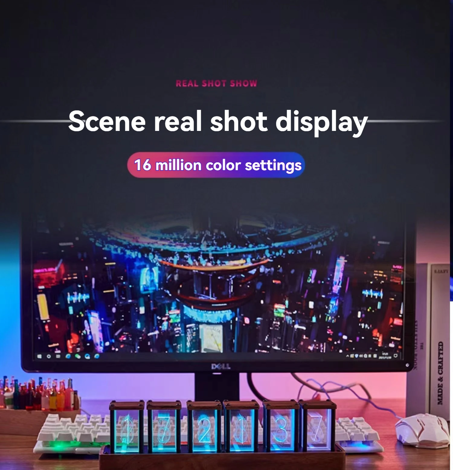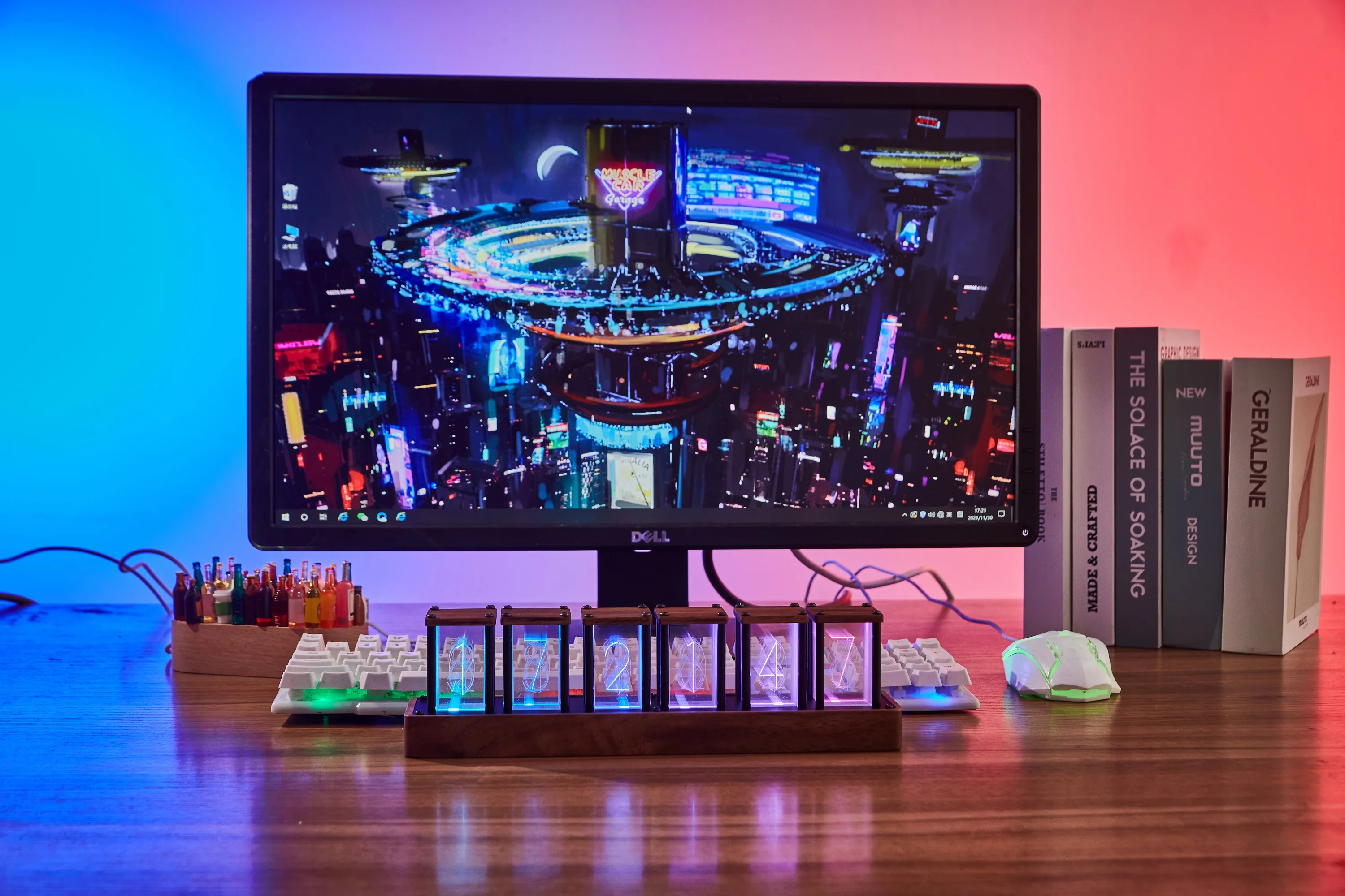 Blend retro style with modern tech using the ClocTeck Nixie Tube Clock — a vibrant RGB digital display clock perfect for your bedroom, desk, or gaming setup.