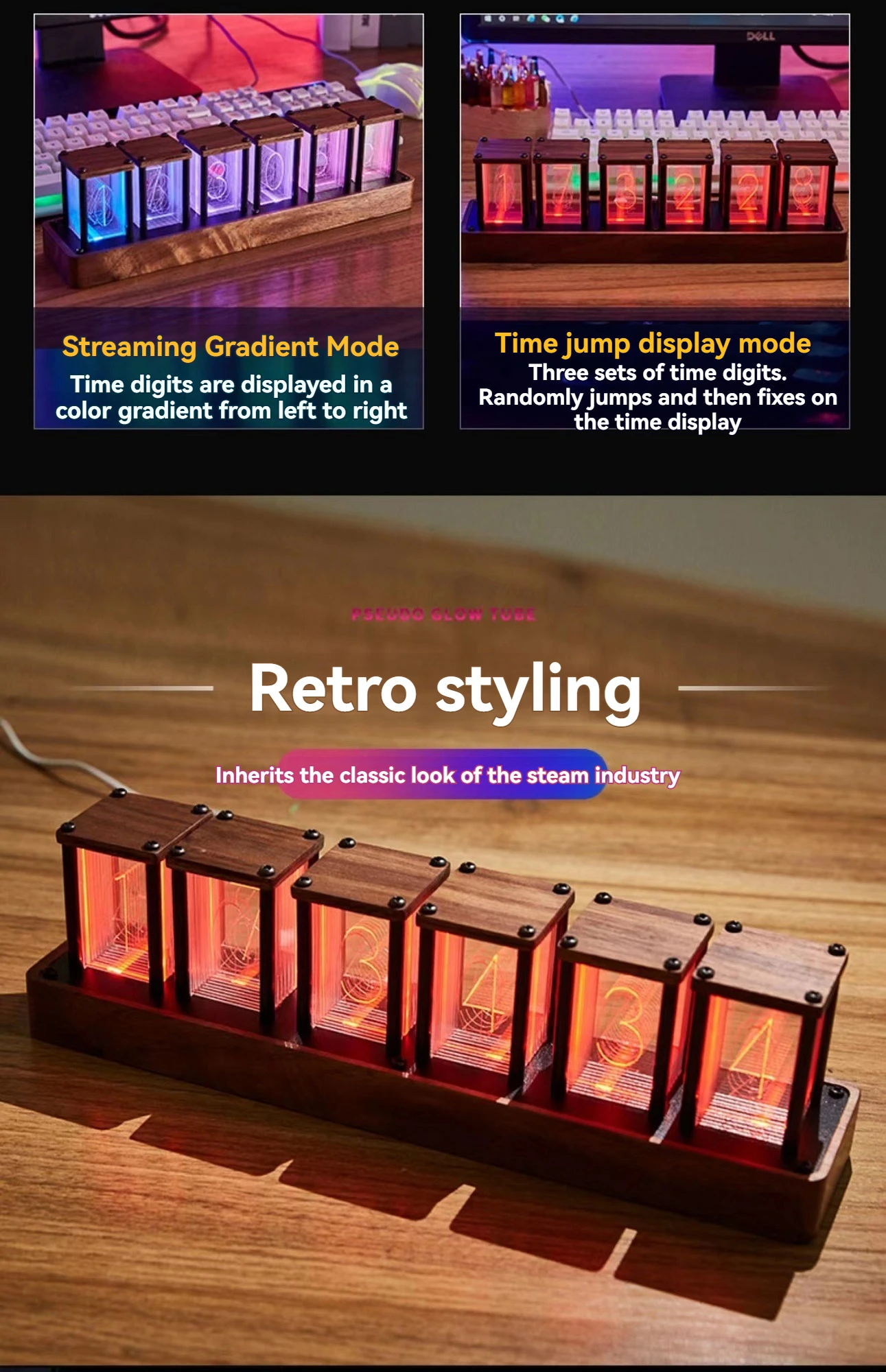 Eye-catching nixie tube-inspired design with modern RGB lighting