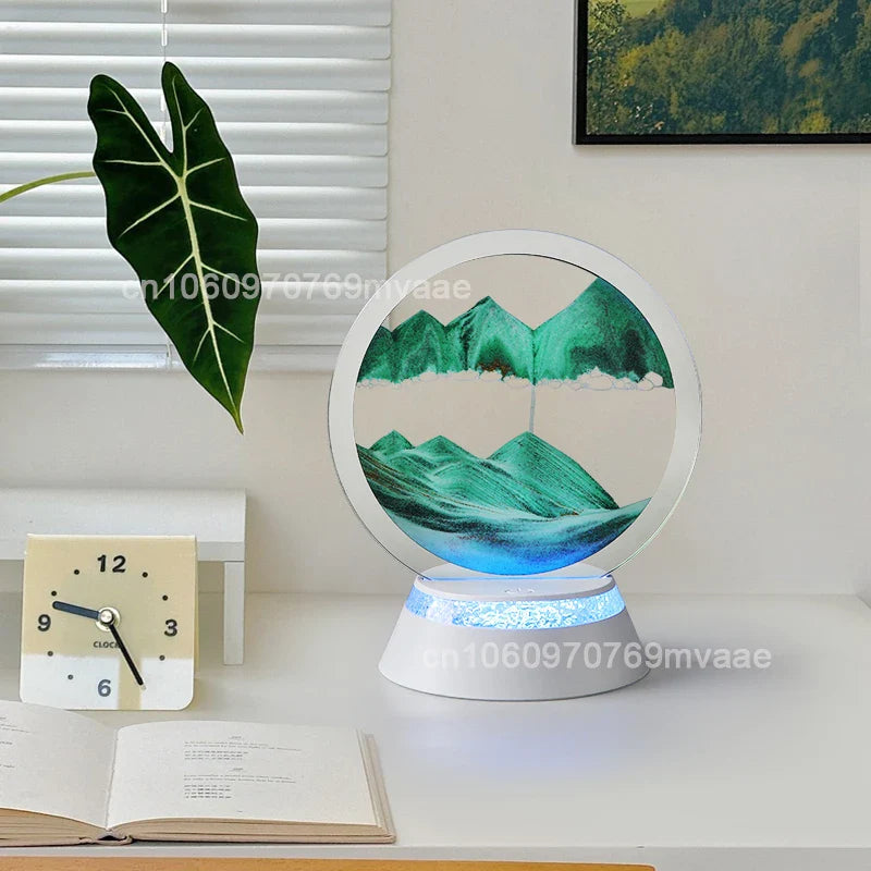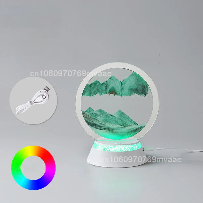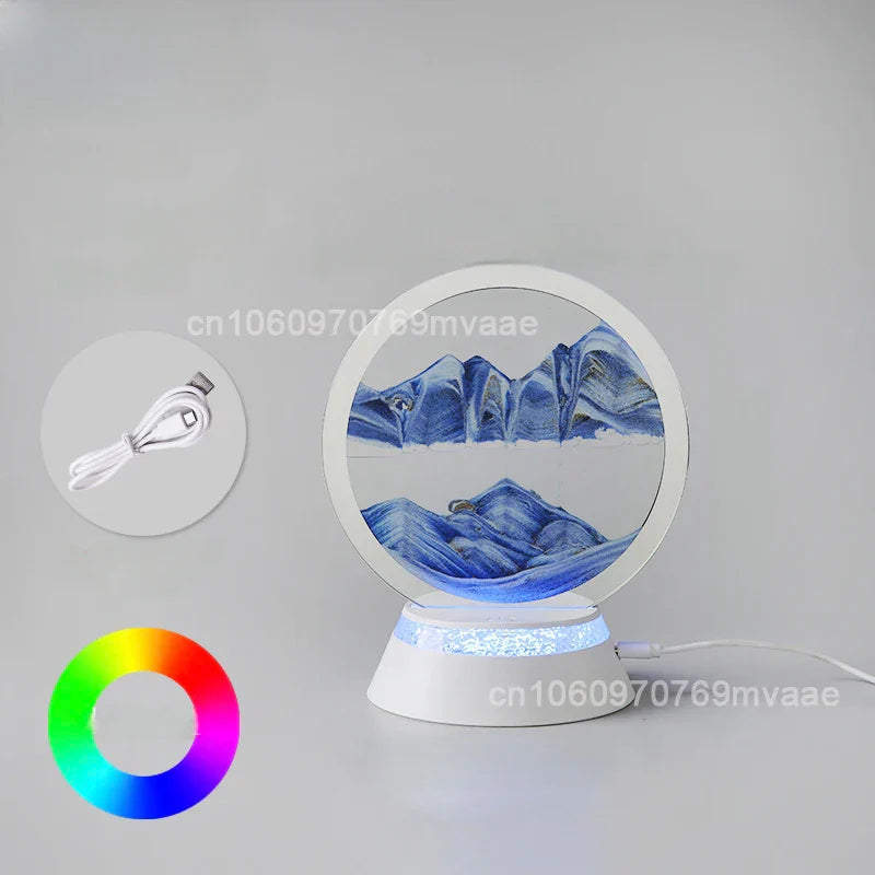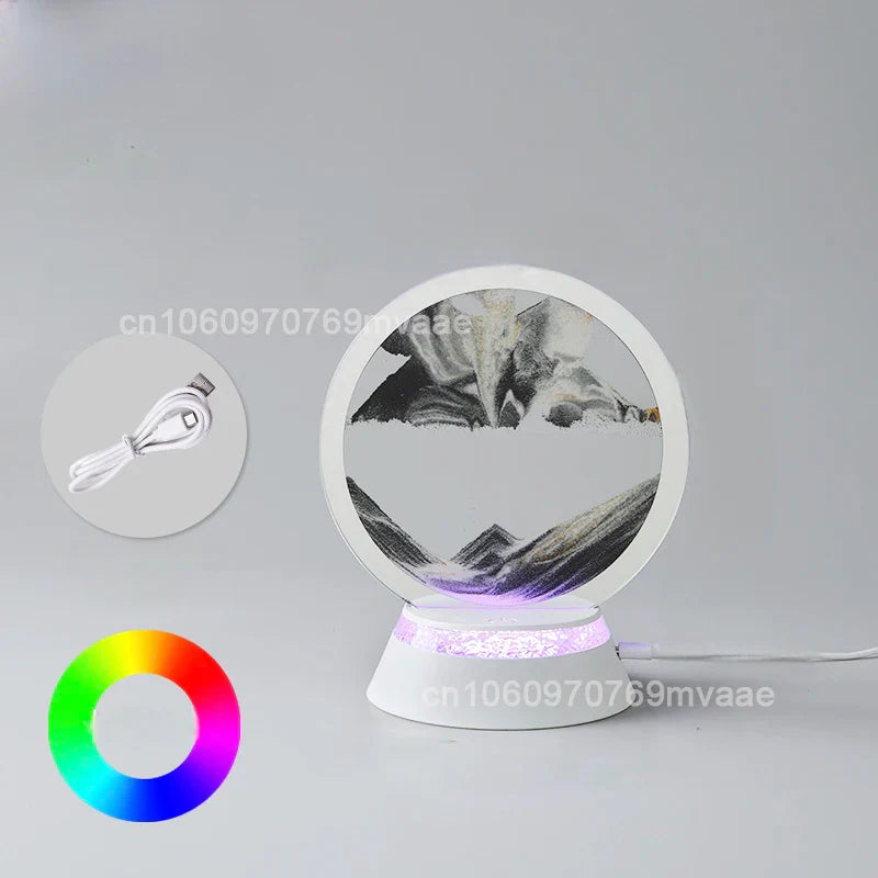 Sandscape Moving Sand Art LED Table Lamp – 7-Color Quicksand 3D Hourglass Night Light for Home & Office