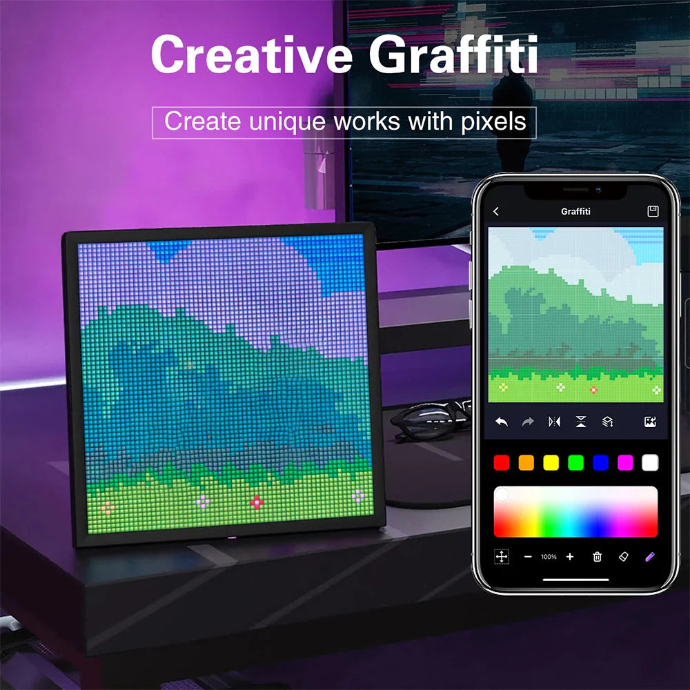 Light up your desk or bedside with this Smart Dynamic Pixel Screen, featuring a stunning 4096-LED matrix and 16 million RGB color options. Custom visuals, pixel art, and mood lighting — all in one sleek, smart device.